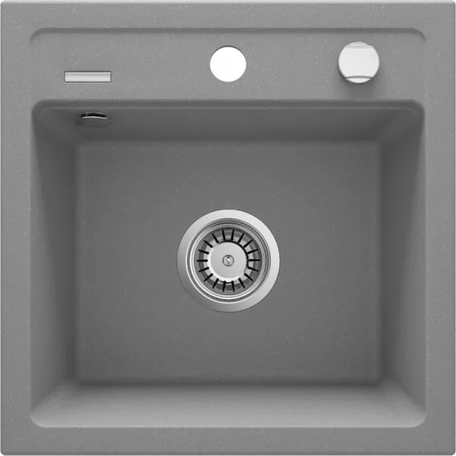 Chiuveta din compozit granit Ferro Mezzo II 1C 1/2P M4858GA, de tip simplu, livrata intr-un singur pachet si comercializata la bucata, are finisaj gri modern si este conceputa pentru montare incastrata in blat, fiind prevazuta cu preaplin pentru siguranta sporita, ventil de scurgere automat pentru utilizare facila si sifon cu racord pentru masina de spalat, iar designul reversibil permite adaptarea usoara in functie de configuratia bucatariei.