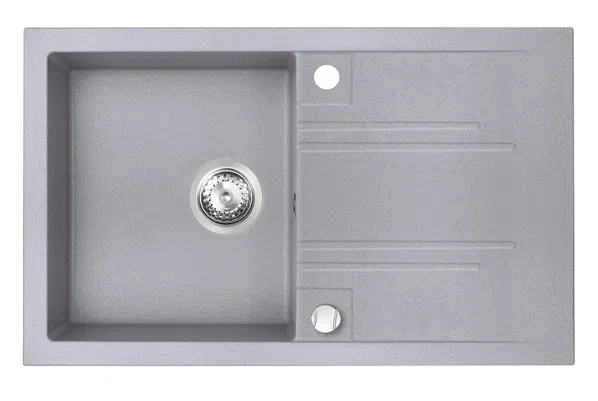 Chiuveta de bucatarie DRGM48/78 GA este realizata din compozit de granit si rasina acrilica, fiind un produs de inalta calitate cu un design modern si elegant. Aceasta ofera durabilitate ridicata, reduce zgomotul in comparatie cu chiuvetele din inox si absoarbe vibratiile, asigurand un confort sporit in utilizare. Modelul este prevazut cu o singura cuva si picurator, fiind reversibil pentru montare pe partea stanga sau dreapta si se instaleaza incastrat in blat. Dispune de preaplin, un orificiu pentru montarea bateriei si are forma patrata, fiind potrivita pentru utilizare la interior. Finisajul lucios si culoarea gri deschis completeaza aspectul modern al chiuvetei.