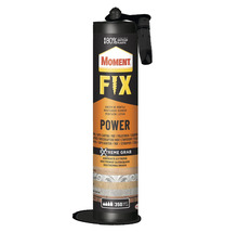 Moment Power Fix este un adeziv conceput pentru utilizare la interior fiind ideal pentru lipirea polistirenului si compatibil cu o gama larga de materiale precum lemn placi ceramice ciment placi aglomerate gipscarton placaj MDF diverse materiale plastice caramida si piatra Produsul are o formula fara solventi cu lipire instantanee si nu necesita fixare mecanica oferind o aderenta initiala foarte puternica de aproximativ 100 kg pe metru patrat Se utilizeaza exclusiv la interior poate fi vopsit dupa uscare si ofera o aderenta excelenta in special pentru lemn pe lemn avand capacitate de umplere a fisurilor de pana la 10 mm Dupa intarire devine impermeabil are miros redus si se aplica la temperaturi de minimum plus 10 grade Celsius fiind potrivit pentru lipirea definitiva a lambriurilor plintelor panourilor decorative panourilor izolatoare tubulaturii din PVC pentru cabluri si placilor de semnalizare